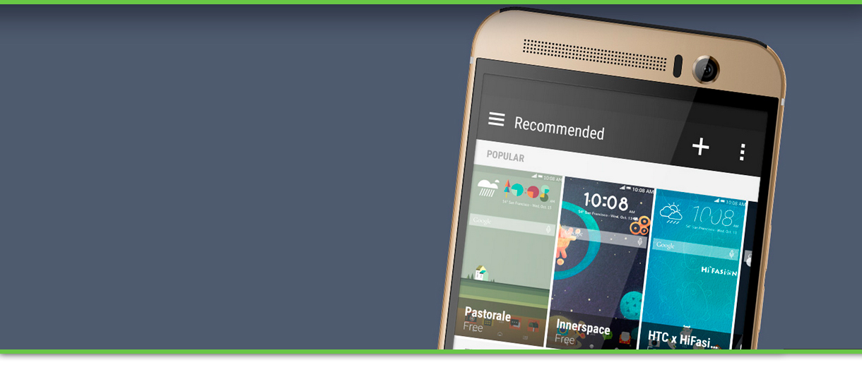 HTC One M9+ sisaldab palju kohandatavaid valikuid. Sisse ehitatud HTC Themes äpiga saab muuta oma telefoni välimust ja tunnetust, kasutades oma isiklikku lemmikfotot. Kontrolli telefonis kõike alates ikoonide kujust ja suurusest kuni helina ja taustapildini välja.